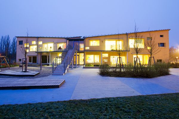 Der Bau wurde als Passivhaus geplant und verbraucht nur ca. 1/8 der Energie eines herkömmlichen Kindergartens.